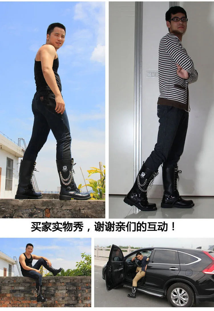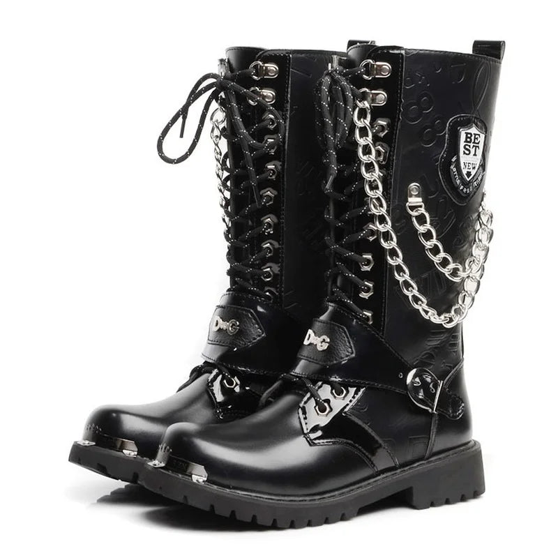 Men Fashion Motorcycle Boots Mid-calf Breathable Combat Boots Gothic Belt Punk Boots Men Shoes Hightop Casual Steel Toe Shoes