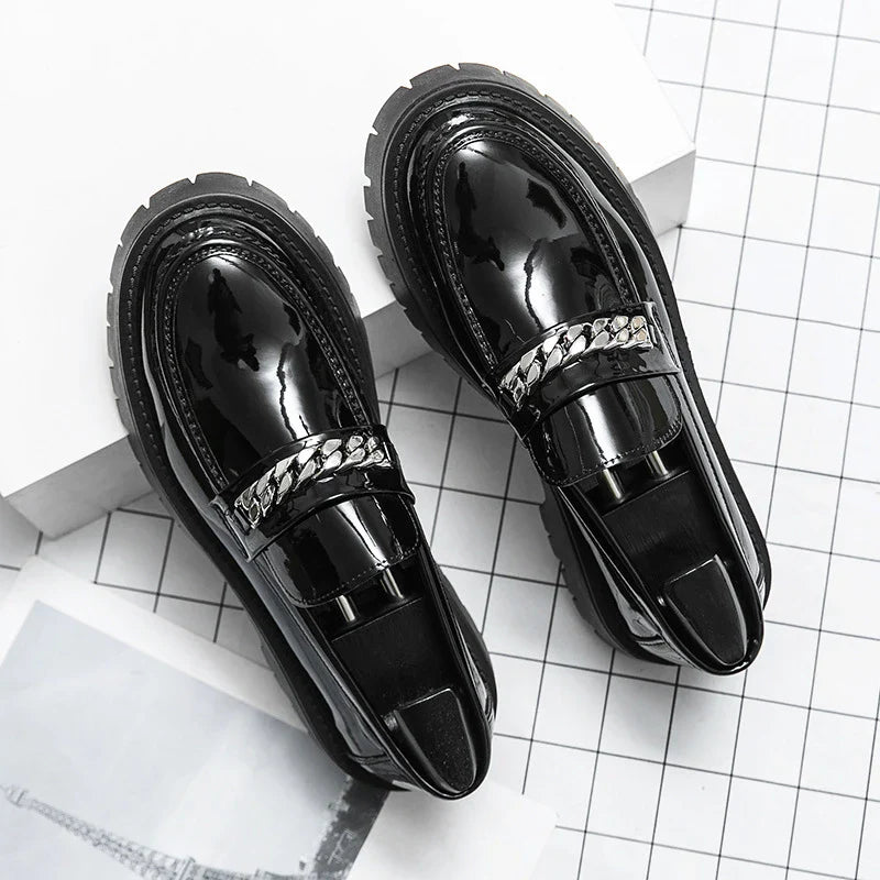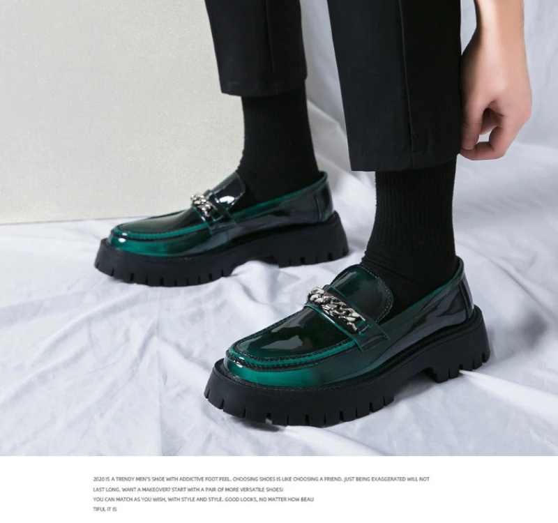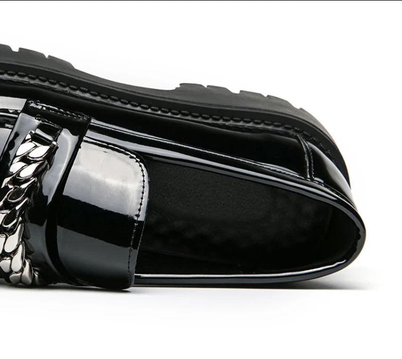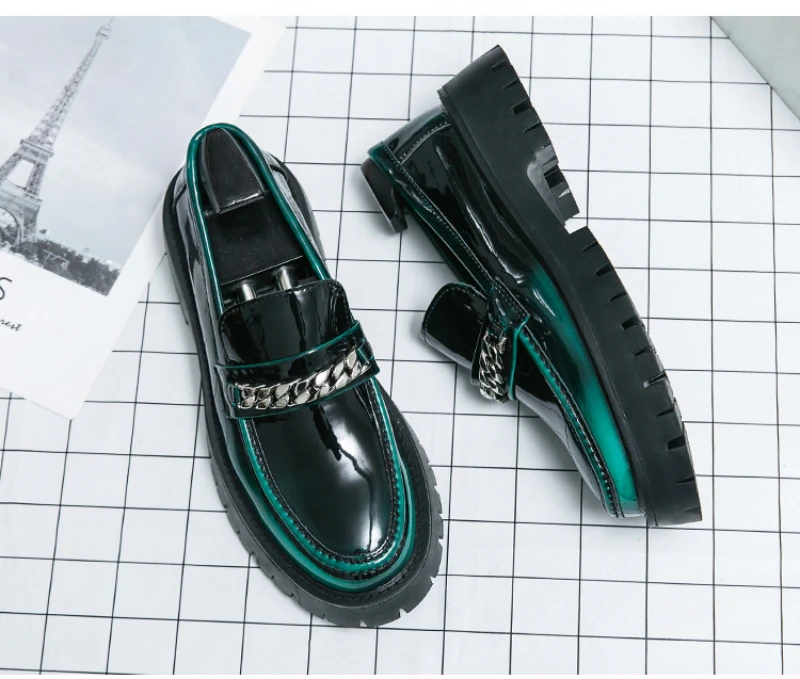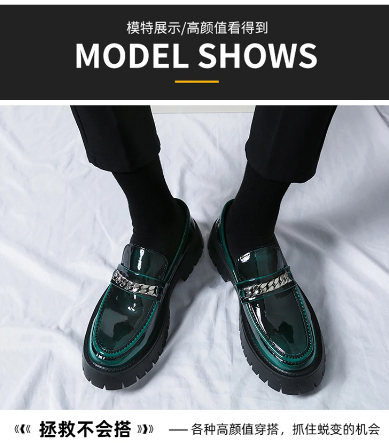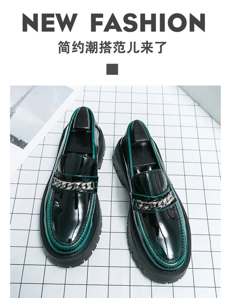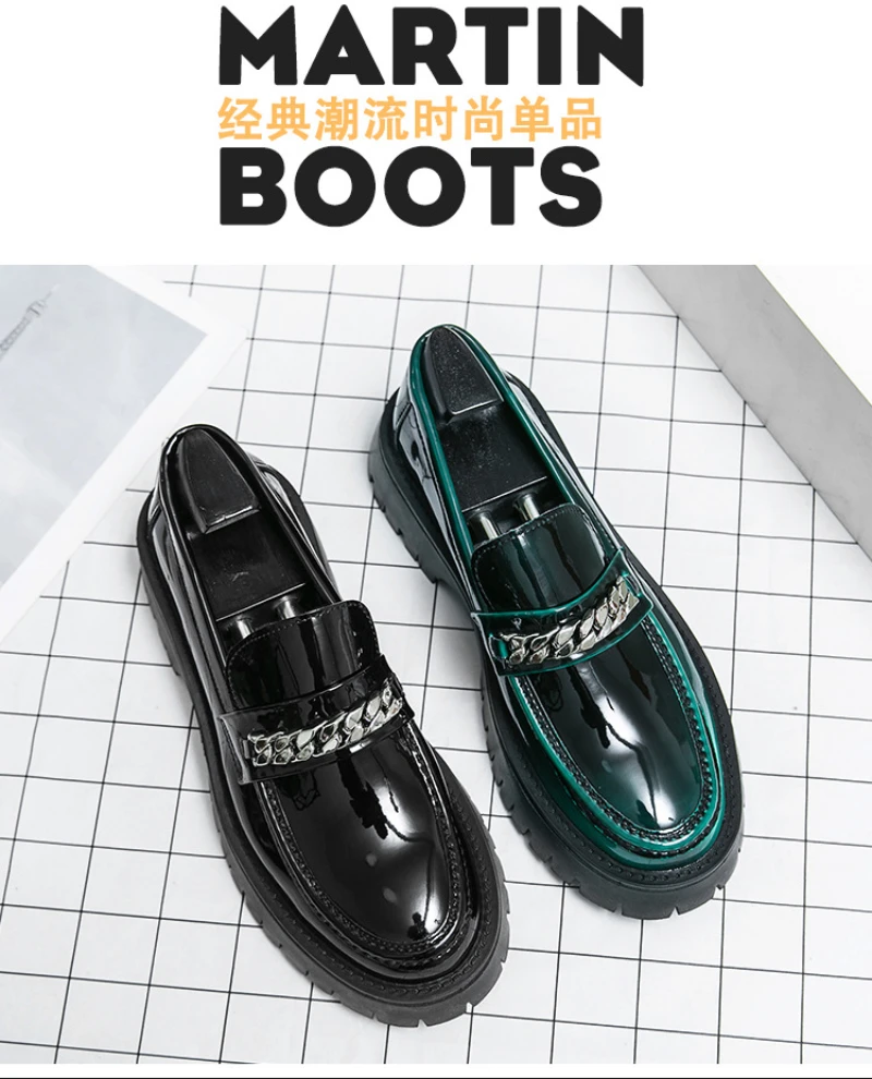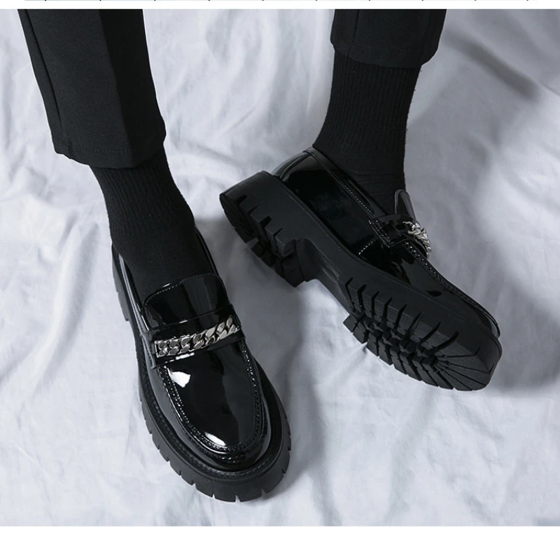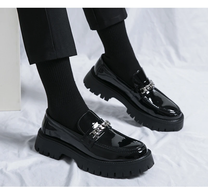 New Men's Big-Head Leather Shoes Thick-Soled High-Rise Patent Leather Glossy Casual Thick-Heeled Loafer Hairstylist Trendy Shoes