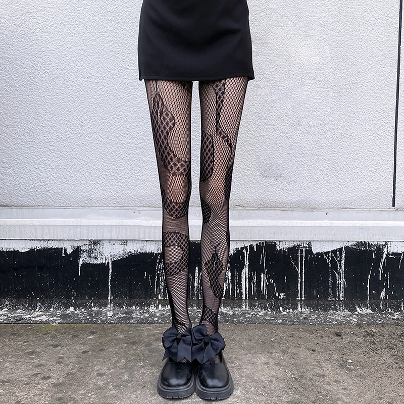 Snake Tights Women Anime Pantyhose 2025 Black Mesh Fishnet Stockings Sexy Harajuku Hosiery Large Lolita G Tights Gothic Clothes