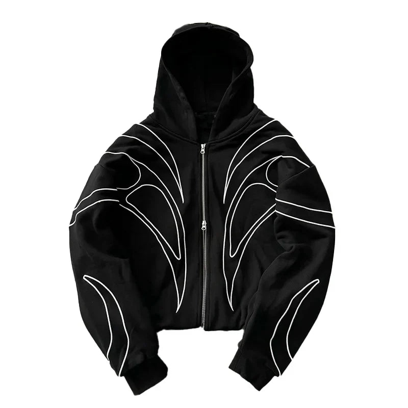 Street Retro Fashion Clothing Striped Embroidered Black Double Zipper Hoodie American Hip-hop Punk Oversized Sweatshirt women