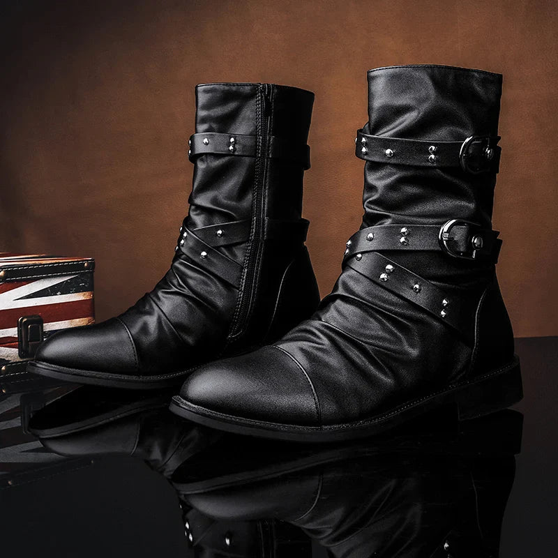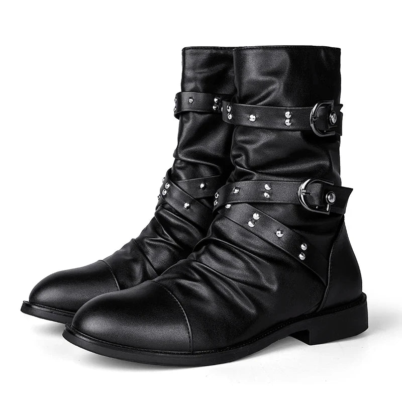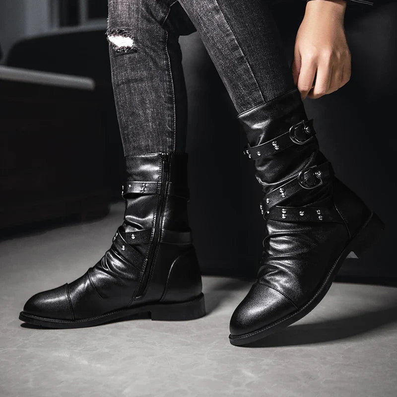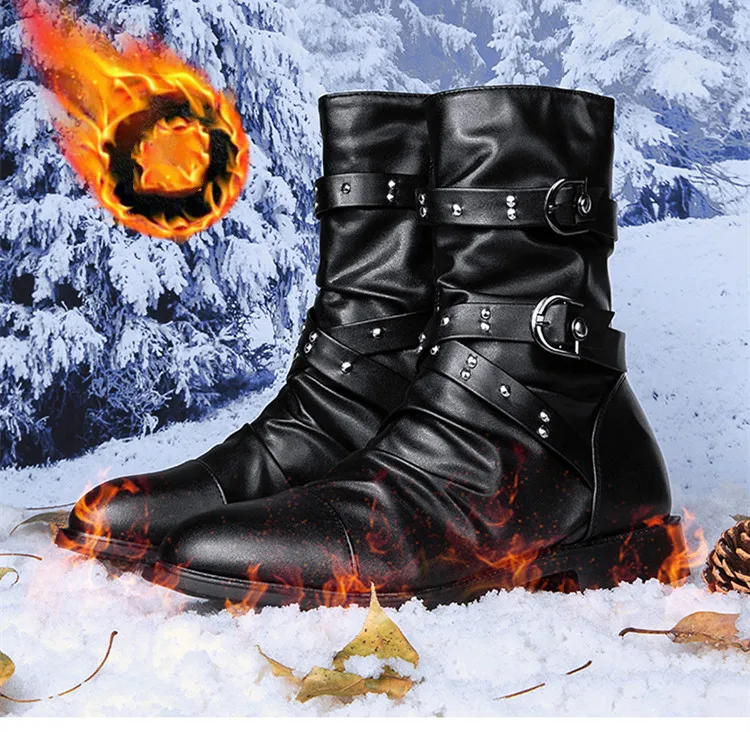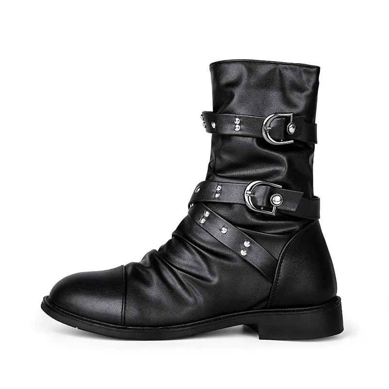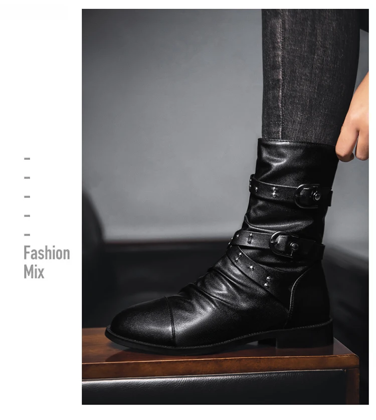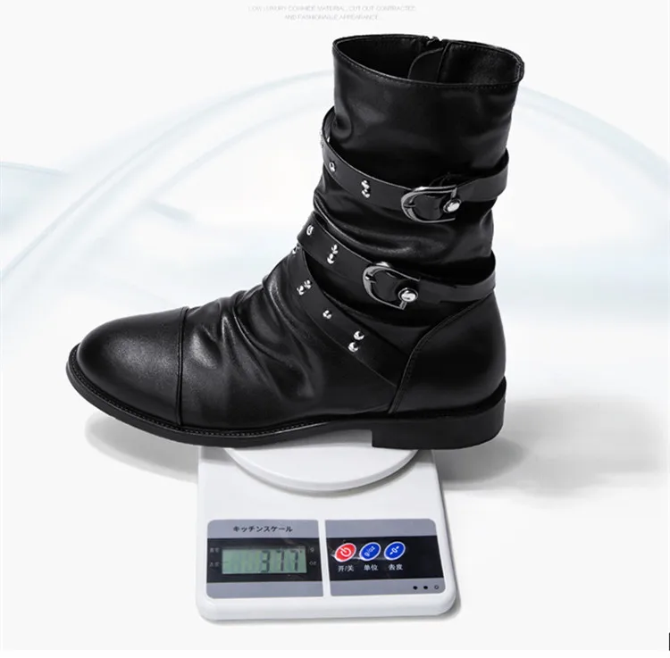 STRONGSHEN Men Fashion Motorcycle Boots Leather Boots Footwear High Top Casual Shoes Military Tactical Boots Gothic Punk Boots