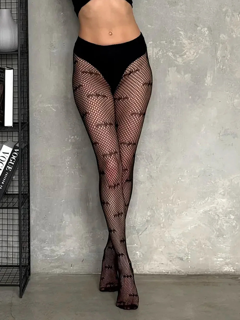 Women Sexy Halloween Black Fishnet Pantyhose Elastic Hollow Mesh Bat Pattern Tights Gothic Punk Wear Hosiery