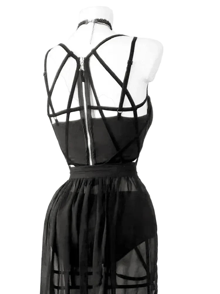 Whether you're rocking it for a night out or layering for a unique look, the Nyxara Set exudes edgy elegance with its bold black color and sleek silhouette. The skirt's elastic waistband ensures a comfortable fit, while the zipper closure adds a touch of refinement. Perfect for goth, punk, and alternative fashion lovers, this set is available in sizes S to 5XL, so everyone can embrace their dark side in style.