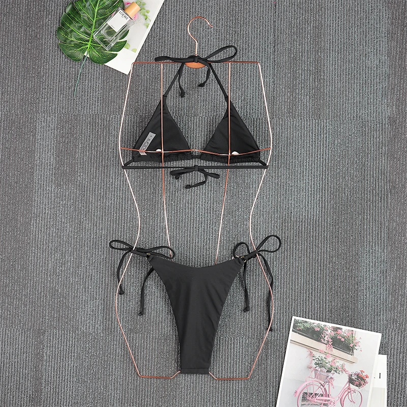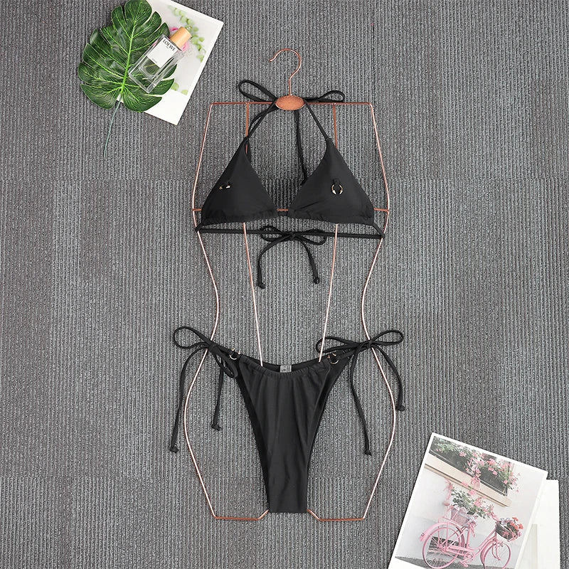 2026 Sexy Halter Solid Color Bikini Set Women's Swimsuit Two-piece Triangle Thong Swimwear Beach Bathing Suit Brazilian Biquinis