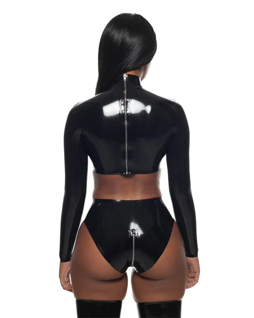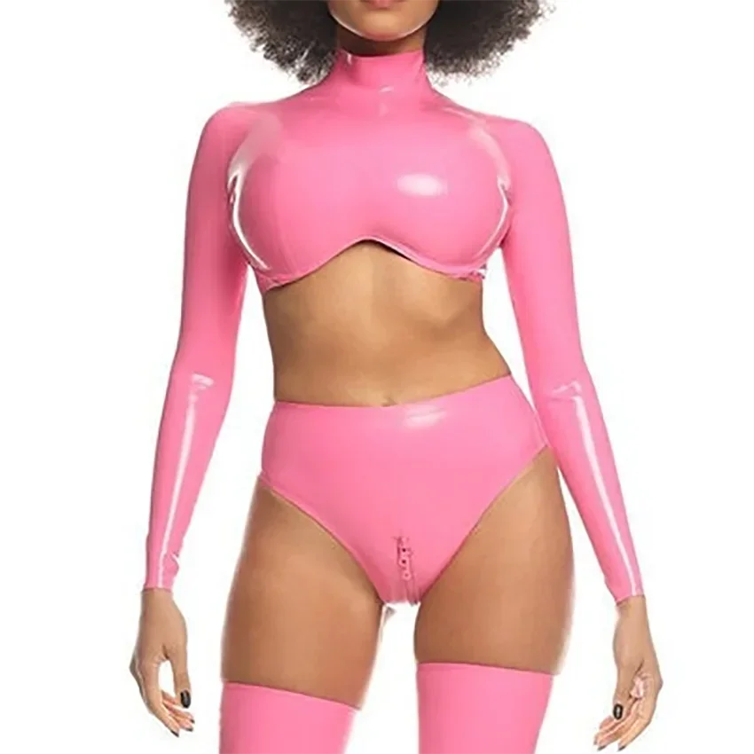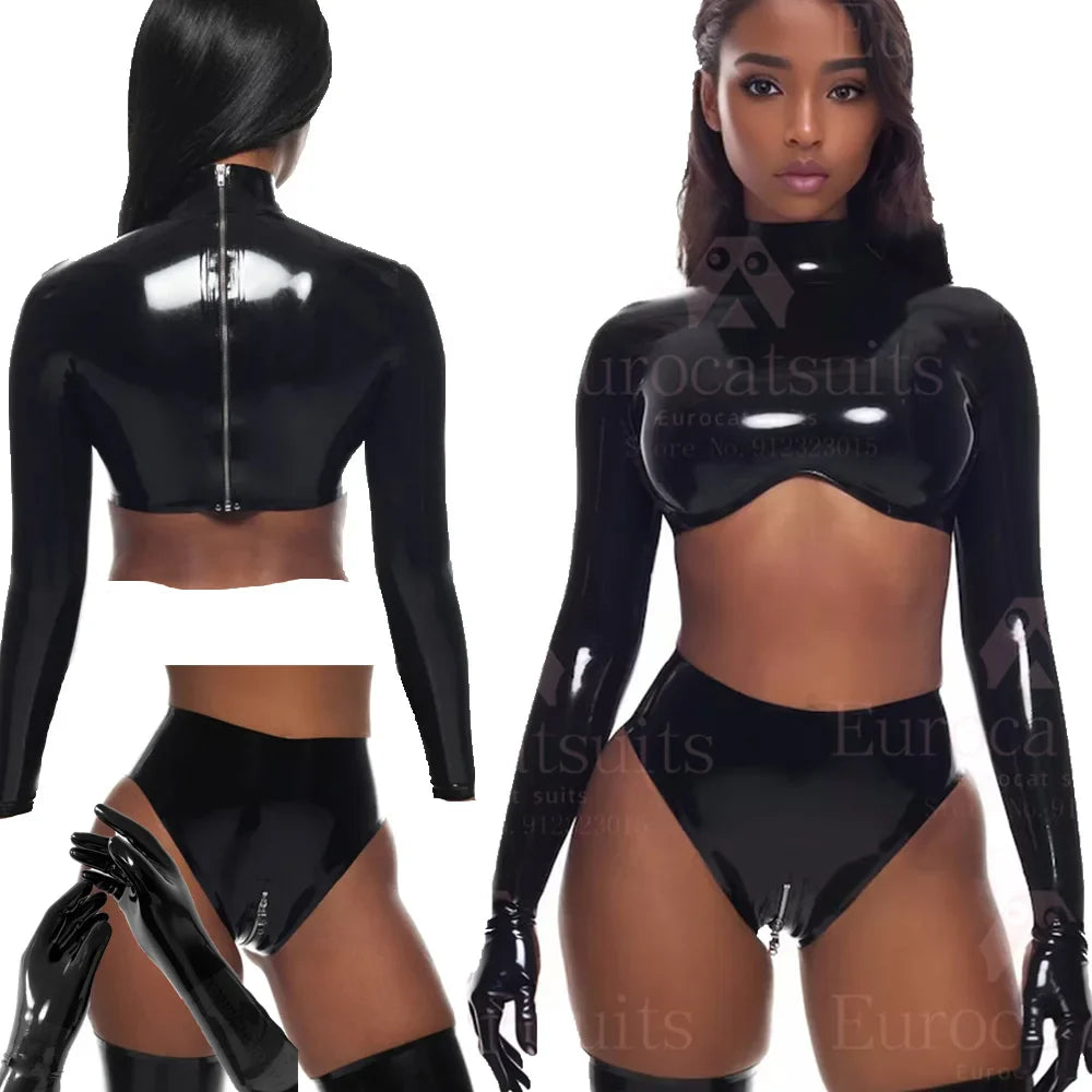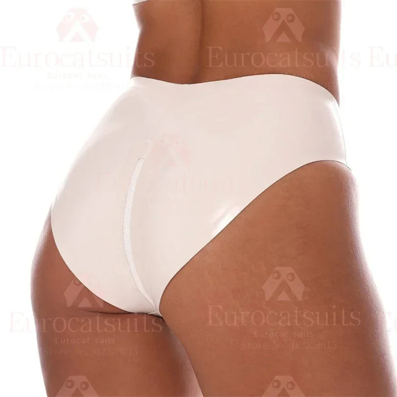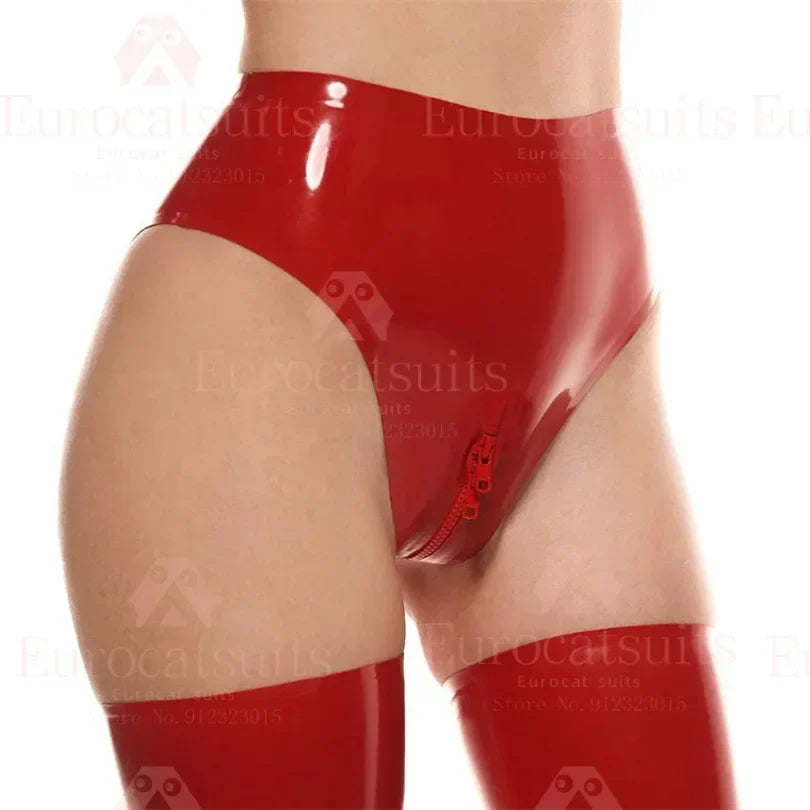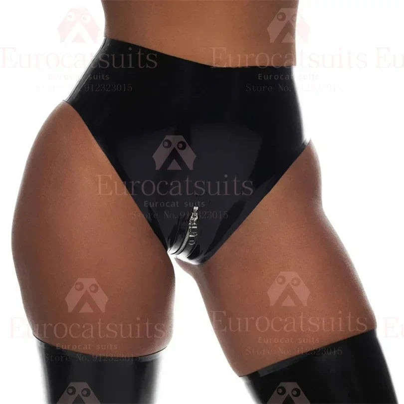latex fetish Underwear latex gloves Lingerie rubber Panties Women High Waist rubber Thongs Strings zipper bodysuit female